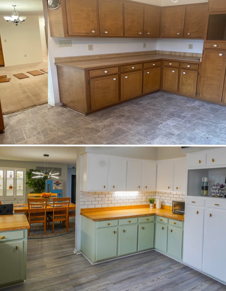 The before-and-after shows how a dated kitchen can become a showpiece while keeping costs low. We reused cabinets, refreshed layouts, and added sleek finishes for a modern look that’s beautiful, practical, and budget-conscious.