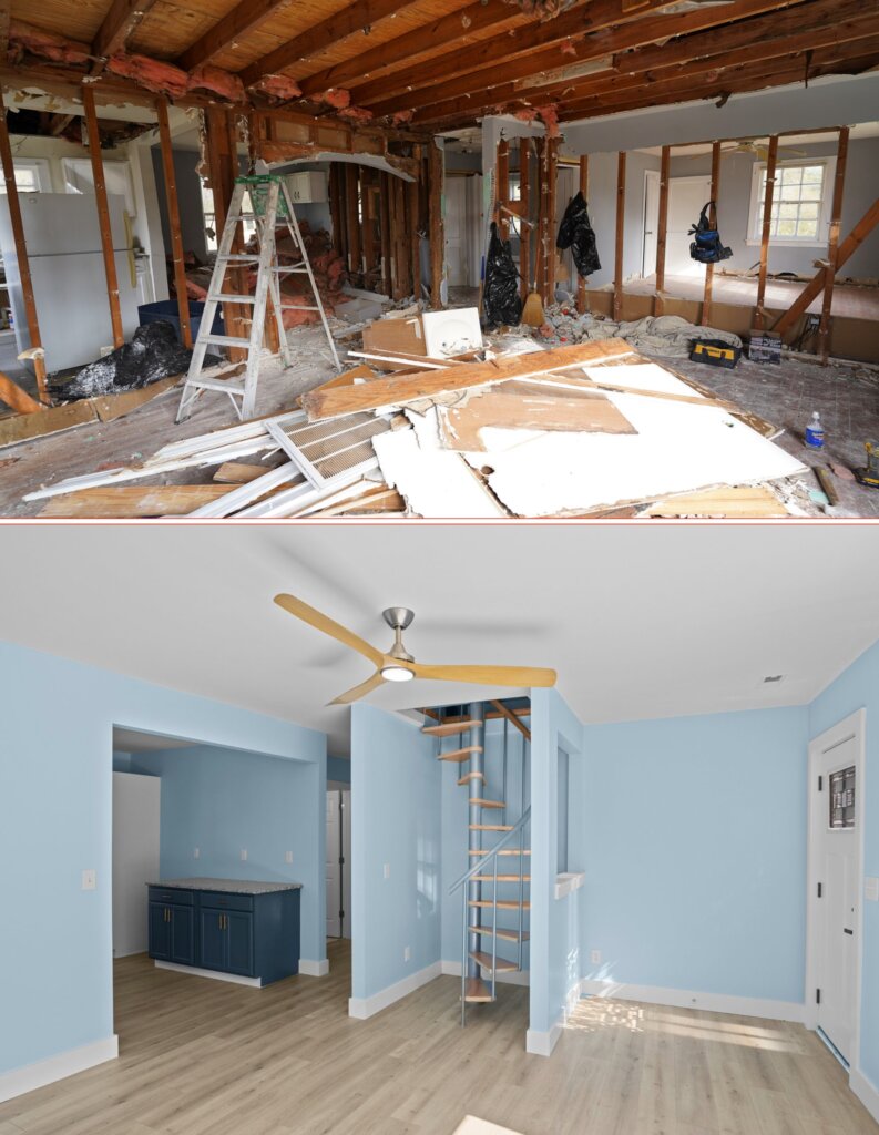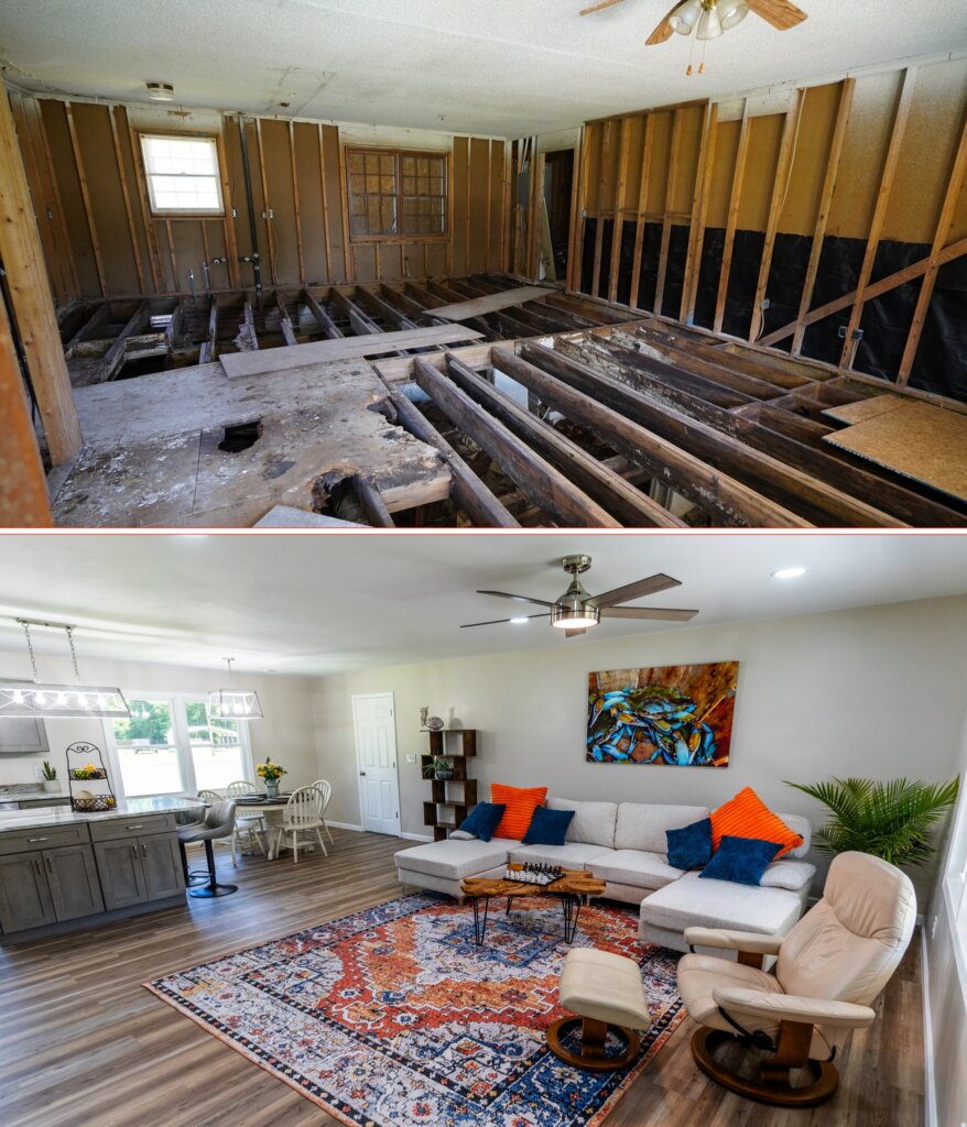 This Lake Clermont home suffered severe flood damage after Hurricane Florence. Water intrusion destroyed the flooring, drywall, and crawl space, leaving behind mold, structural issues, and a home that was unsafe to live in. Now fully remodeled and restored, this James City property now features brand-new flooring, updated interiors, and a clean, modern design built with flood-resistant materials. The home not only regains its charm and livability but also provides long-lasting durability and peace of mind for future homeowners.
